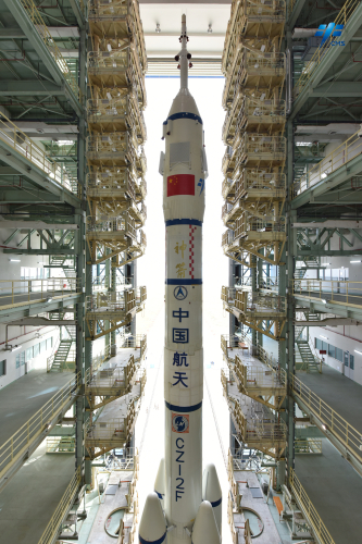 长征二号F遥十五运载火箭垂直转运至发射区